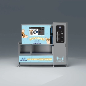 iClean International has improved and redesigned the original Dog Wash and updated it with car wash-quality components and an 11-inch touchscreen (iPad size) and a 32-inch Full HD TV with a lot of extra features.